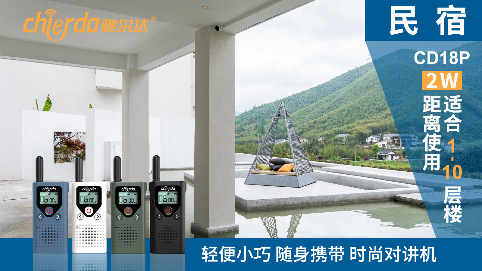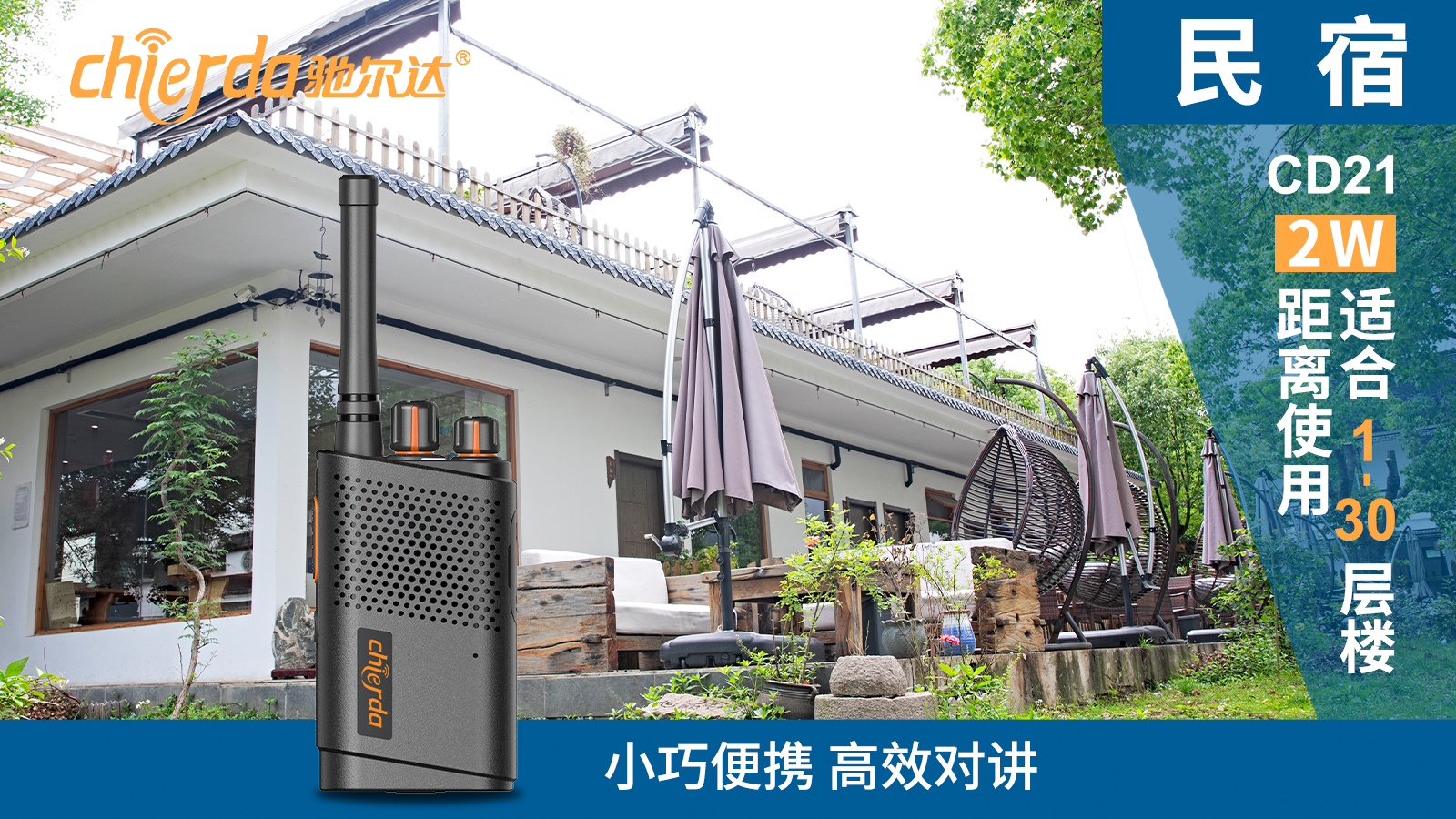 大家對(duì)民宿的不同需求和體驗(yàn),也就造就了民宿中互通互聯(lián)通訊的需求逐步增長(zhǎng),但是由于不同的民宿建筑風(fēng)格、面積、格局不一樣,不同的類型適合不同類型的通訊工具。為滿足不同需求,馳爾達(dá)公司特推出了適合不同需求、不同場(chǎng)景的對(duì)講機(jī)產(chǎn)品。例如: